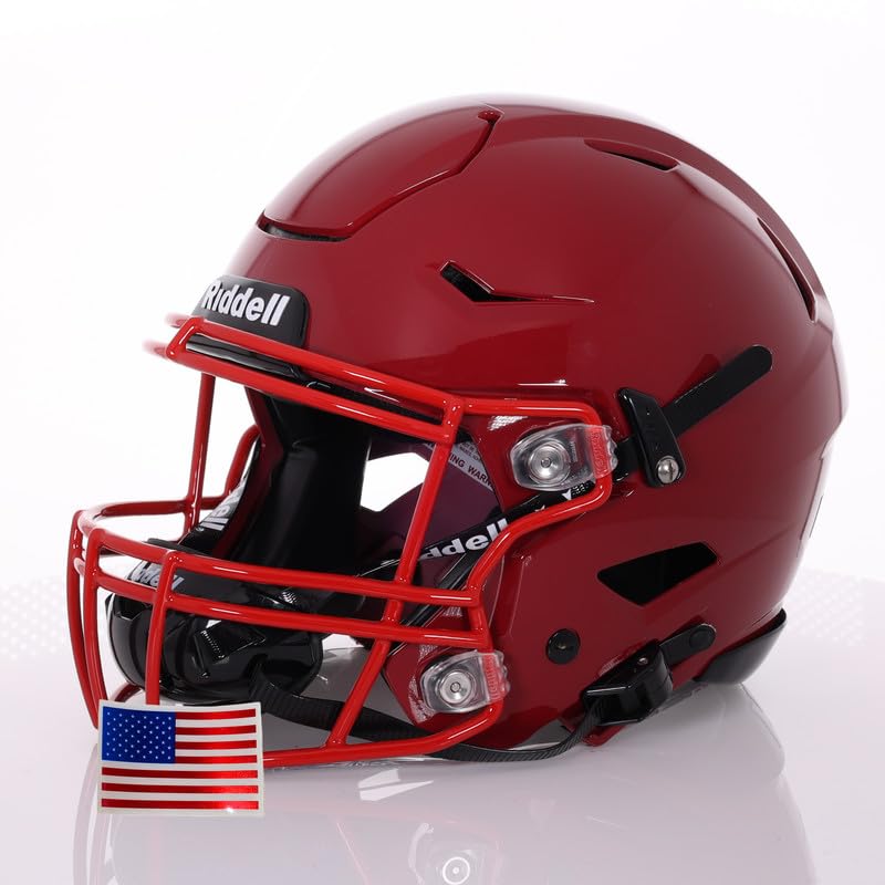 2025 Riddell SpeedFlex Adult w/Scarlet SF-2BD Facemask + US Helmet Flag Decal - Green Gridiron—